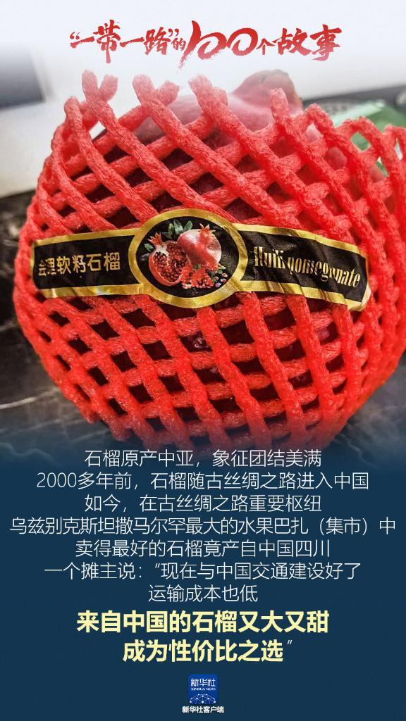 石榴原產(chǎn)中亞,象征團(tuán)結(jié)美滿。2000多年前,石榴隨古絲綢之路進(jìn)入中國。如今,在古絲綢之路重要樞紐烏茲別克斯坦撒馬爾罕最大的水果巴扎(集市)中,賣得最好的石榴竟產(chǎn)自中國四川。一個攤主說:“現(xiàn)在與中國交通建設(shè)好了,運(yùn)輸成本也低,來自中國的石榴又大又甜,成為性價比之選?!保ㄓ浾撸喉趵桕兀?/p>