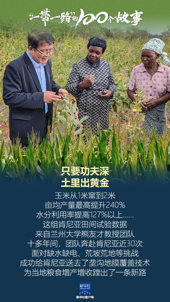 只要功夫深,土里出黃金。玉米從1米竄到2米,畝均產(chǎn)量最高提升240%,水分利用率提高127%以上……這組肯尼亞田間試驗數(shù)據(jù),來自蘭州大學(xué)熊友才教授團(tuán)隊。十多年間,團(tuán)隊奔赴肯尼亞近30次,面對缺水缺電、荒坡荒地等挑戰(zhàn),成功給肯尼亞送去了壟溝地膜覆蓋技術(shù),為當(dāng)?shù)丶Z食增產(chǎn)增收蹚出了一條新路。(記者:張文靜、郭剛)