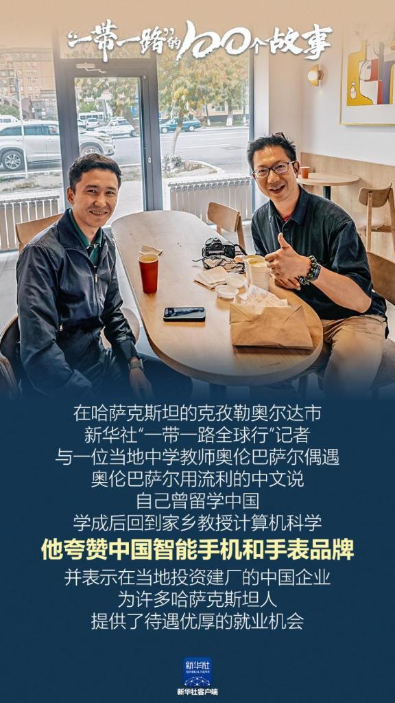 在哈薩克斯坦的克孜勒奧爾達市,新華社“一帶一路全球行”記者與一位當?shù)刂袑W教師奧倫巴薩爾偶遇。奧倫巴薩爾用流利的中文說,自己曾留學中國,學成后回到家鄉(xiāng)教授計算機科學。他夸贊中國智能手機和手表品牌,并表示在當?shù)赝顿Y建廠的中國企業(yè)為許多哈薩克斯坦人提供了待遇優(yōu)厚的就業(yè)機會。(記者:劉洪德)