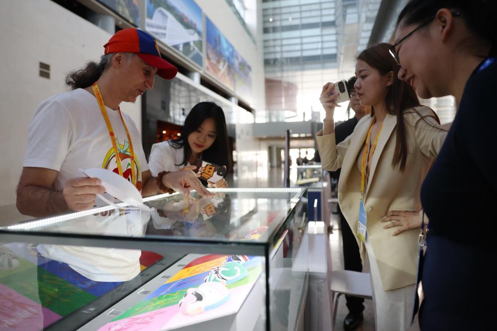 在論壇新聞中心科技文化互動(dòng)展示區(qū),哈薩克斯坦BAQ通訊社記者古爾然·拉曼庫洛娃饒有興致地體驗(yàn)著手繪彩塑京劇臉譜。在這里,除了彩塑京劇臉譜,還有木版水印、景泰藍(lán)制作等“非遺”體驗(yàn)項(xiàng)目,外籍記者可近距離感受中國(guó)傳統(tǒng)文化的魅力。