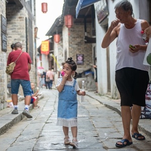 9月9日,游客在湖北赤壁羊樓洞明清石板街參觀游覽。新華社發(fā)(杜子璇攝)