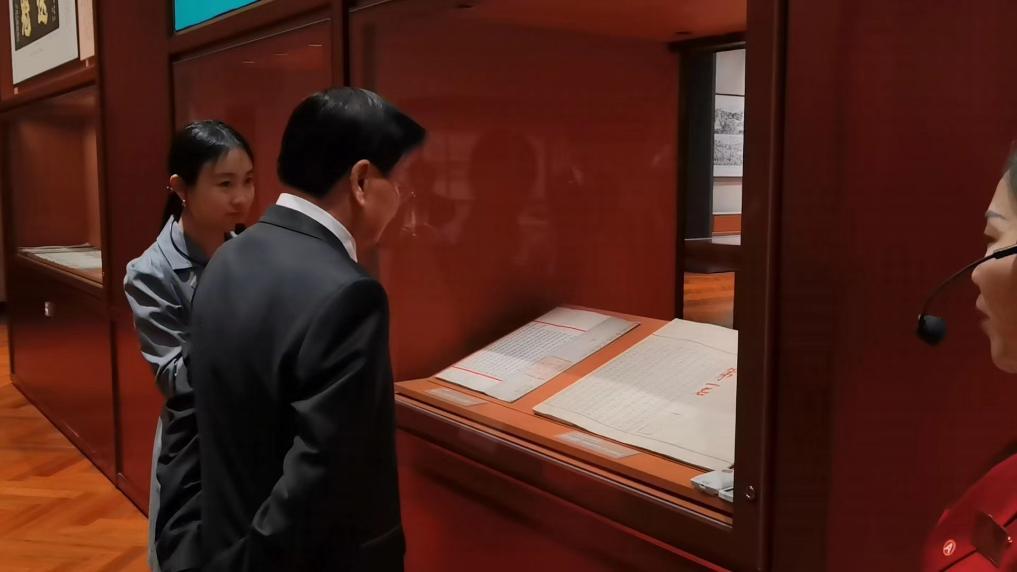 文瀚廳的展臺上擺放著《永樂大典》“湖”字冊的高仿復(fù)制本,通倫輕輕拿起壓在書上的鎮(zhèn)紙慢慢翻看。講解員告訴通倫總書記:“這本書的原件是一位中國收藏家?guī)啄昵盎?00多萬歐元從法國巴黎買回來的,捐給了國家?!?/p>