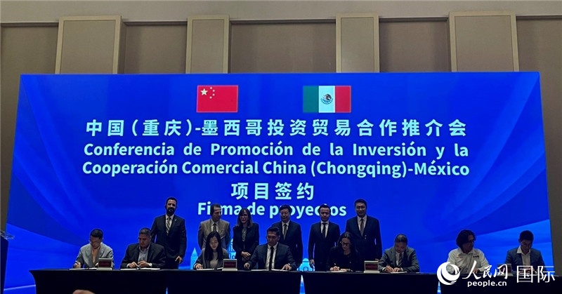 | 圖為中國(重慶)—墨西哥投資貿易合作推介會項目簽約現(xiàn)場。人民網(wǎng)記者 彭敏攝 |
