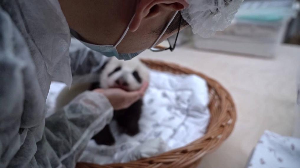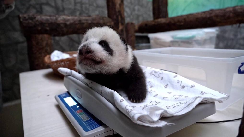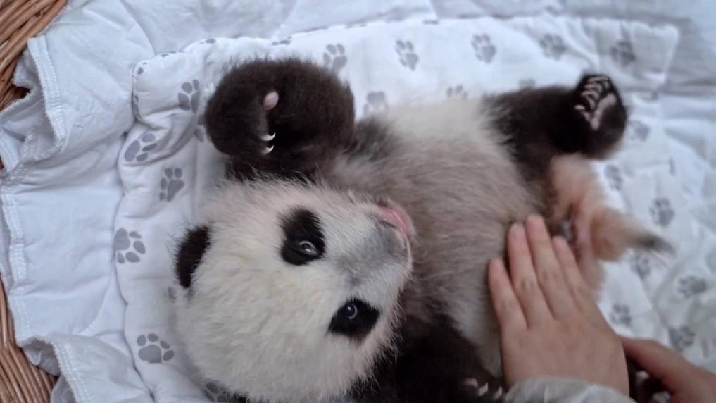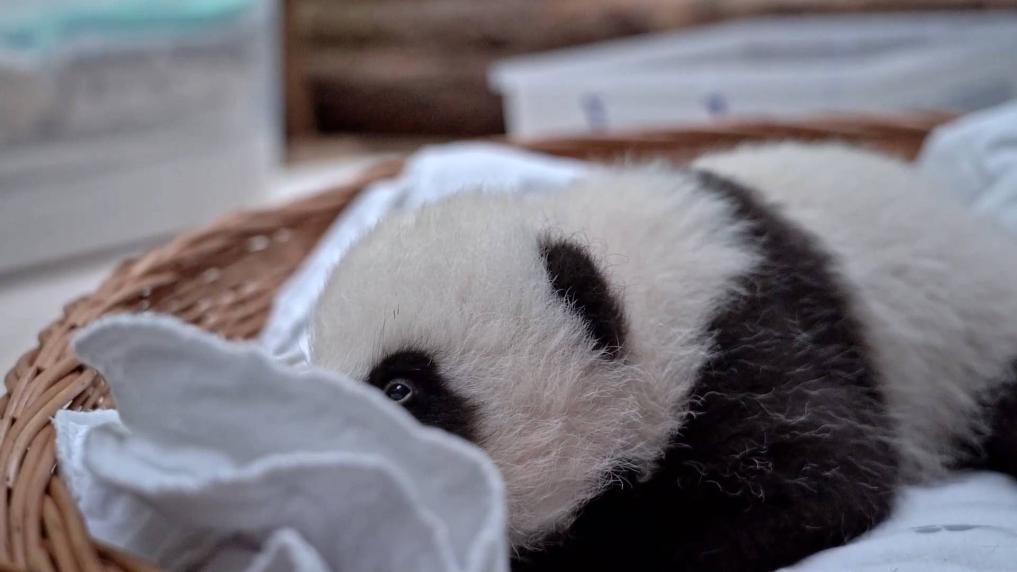 24日,中國旅俄大熊貓“丁丁”和“如意”的幼崽已經(jīng)兩個月了。