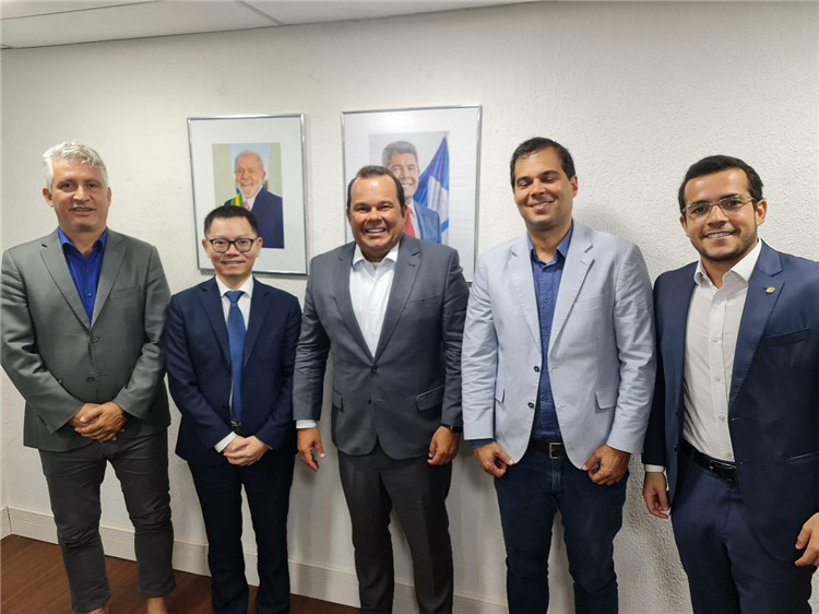 巴伊亞州副州長杰拉爾多·儒尼奧爾(中)與中國—巴伊亞州礦業(yè)委員會(huì)主要成員合影。巴西巴伊亞州“中國—巴伊亞州礦業(yè)委員會(huì)”供圖