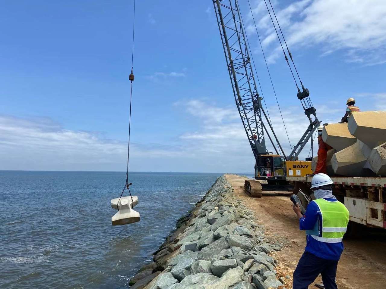 卡約新港口項目位于安哥拉卡賓達省,由中國進出口銀行提供買方信貸資金,由中國路橋工程有限責任公司以EPC總承包方式實施。項目包括新建深水港口工程、港口設備的采購,以及與港口港區(qū)配套的自貿區(qū)及相關設施建設。港口工程的主要部分是在近岸水域新建一個離岸式700米長的集裝箱和散雜貨碼頭,背后形成吹填堆場,還包括引堤、引橋和陸域設施,形成了一個功能齊全的大型深水港口,設計年吞吐量達580萬噸。王棟表示,卡約新港口項目已完成超過40%的工程,預計將于2025年年底竣工。這個項目不僅代表著中國企業(yè)的高水平工程實施,還體現(xiàn)了中安兩國在“一帶一路”框架下的密切合作。