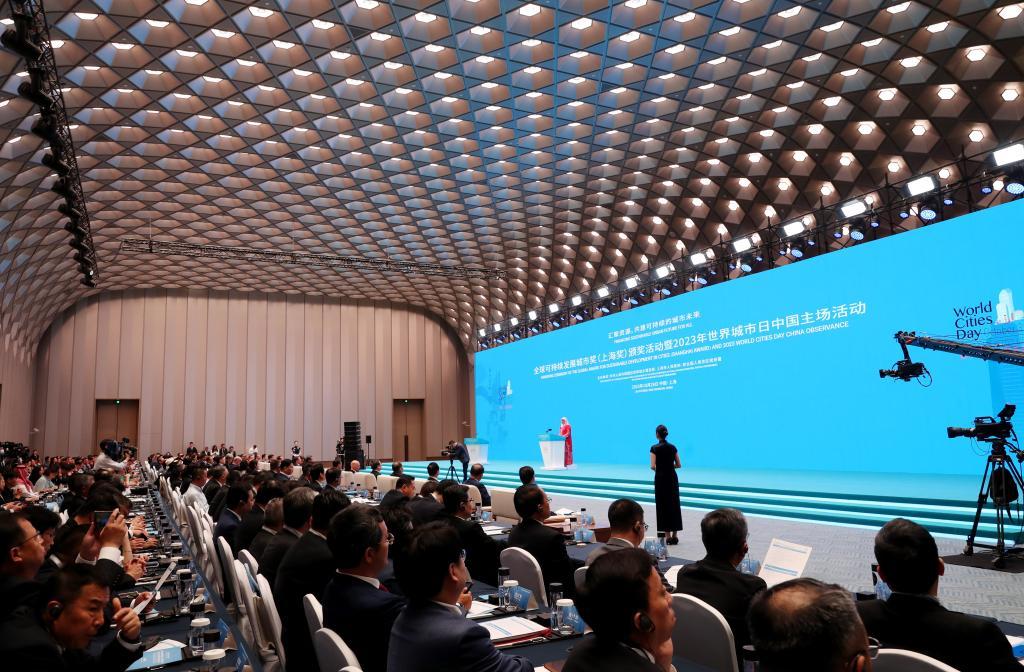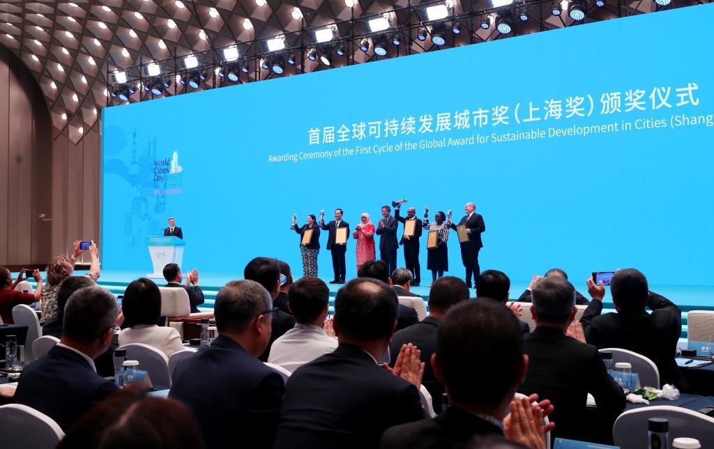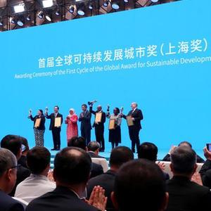 全球可持續(xù)發(fā)展城市獎(jiǎng)(上海獎(jiǎng))頒予中國福州等全球5個(gè)城市。新華社記者 方喆攝