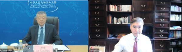 2023年10月30日,中國(guó)政府朝鮮半島事務(wù)特別代表劉曉明同美國(guó)對(duì)朝政策特別代表金圣視頻通話,就朝鮮半島形勢(shì)交換意見(jiàn)。