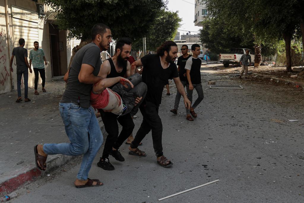 11月2日,人們在加沙城遭以軍空襲后轉移傷者。新華社發(fā)