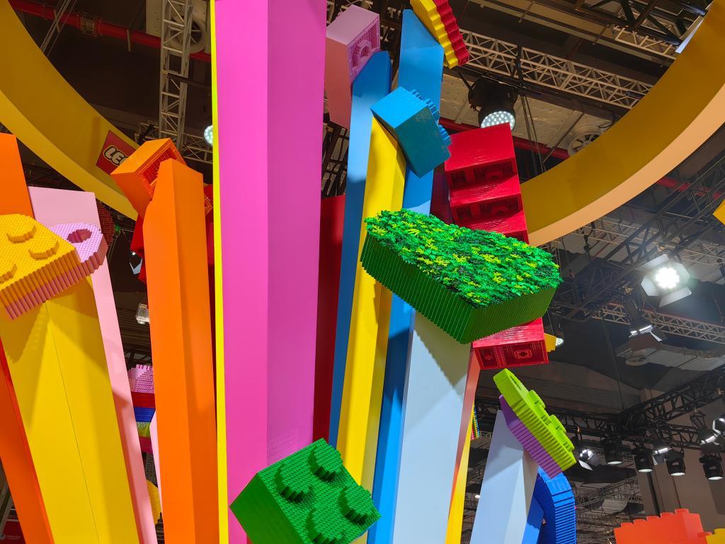 第六屆進(jìn)博會(huì)樂高展臺(tái)上,10萬(wàn)塊樂高積木顆粒搭建而成的大型3D樂高積木模型“玩樂之心”。新華社記者周蕊 攝