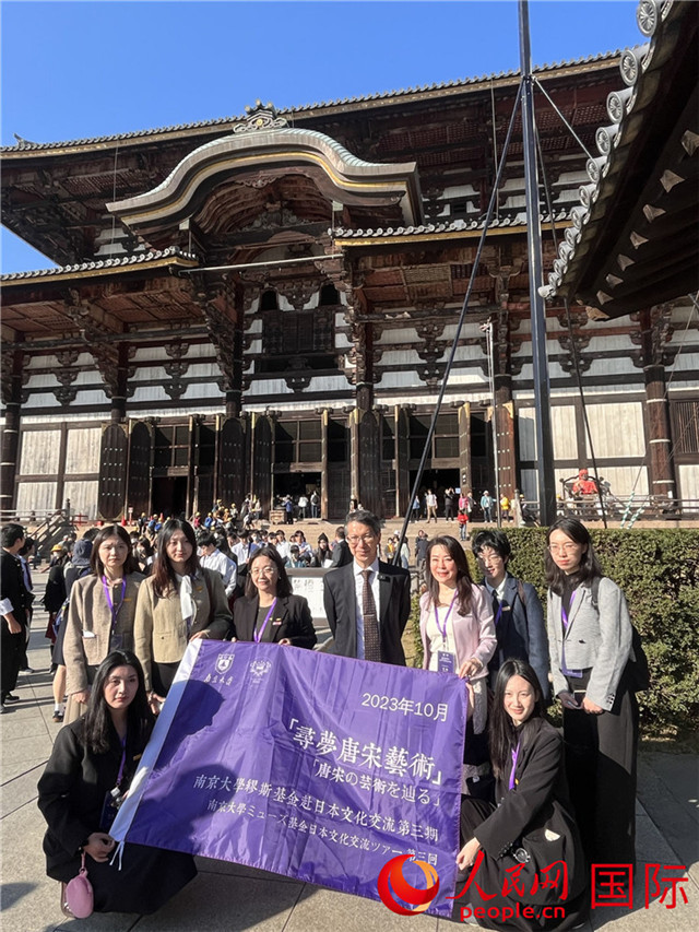 | 第三期“尋夢唐宋藝術(shù)”赴日文化交流團師生在東大寺合影。人民網(wǎng)記者 朱玥穎攝 |