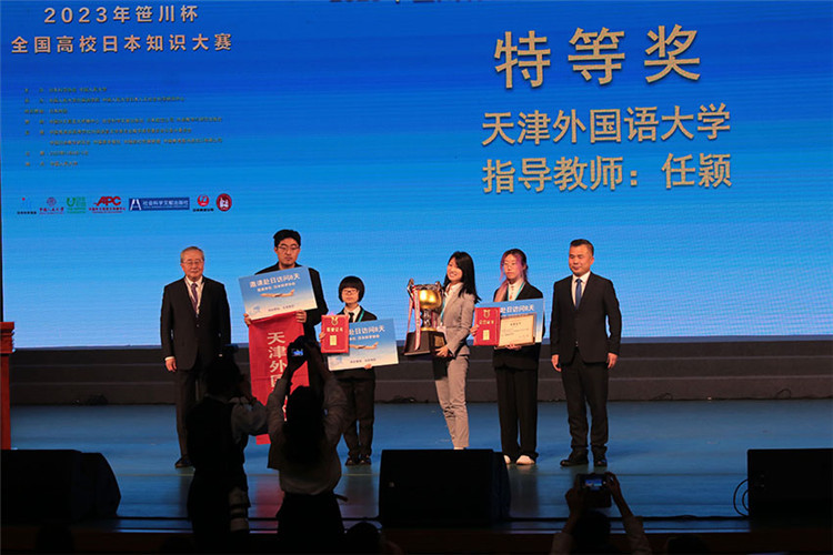 天津外國語大學(xué)代表隊(duì)獲得2023年“笹川杯”全國高校日本知識(shí)大賽團(tuán)體賽特等獎(jiǎng)。人民網(wǎng)記者 張麗婭攝