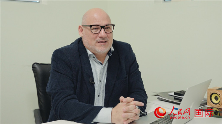 烏拉圭《共和國報》總編輯胡安·布蘭卡接受人民網(wǎng)專訪。人民網(wǎng)記者 張若涵攝