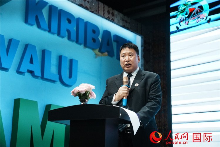 | 南太島國聯(lián)合館館長單玉強發(fā)表致辭。人民網(wǎng) 彭昱凱攝 |
