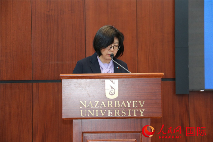 | 中國駐哈薩克斯坦大使館臨時代辦邢芳芳致辭。人民網記者李強攝 |