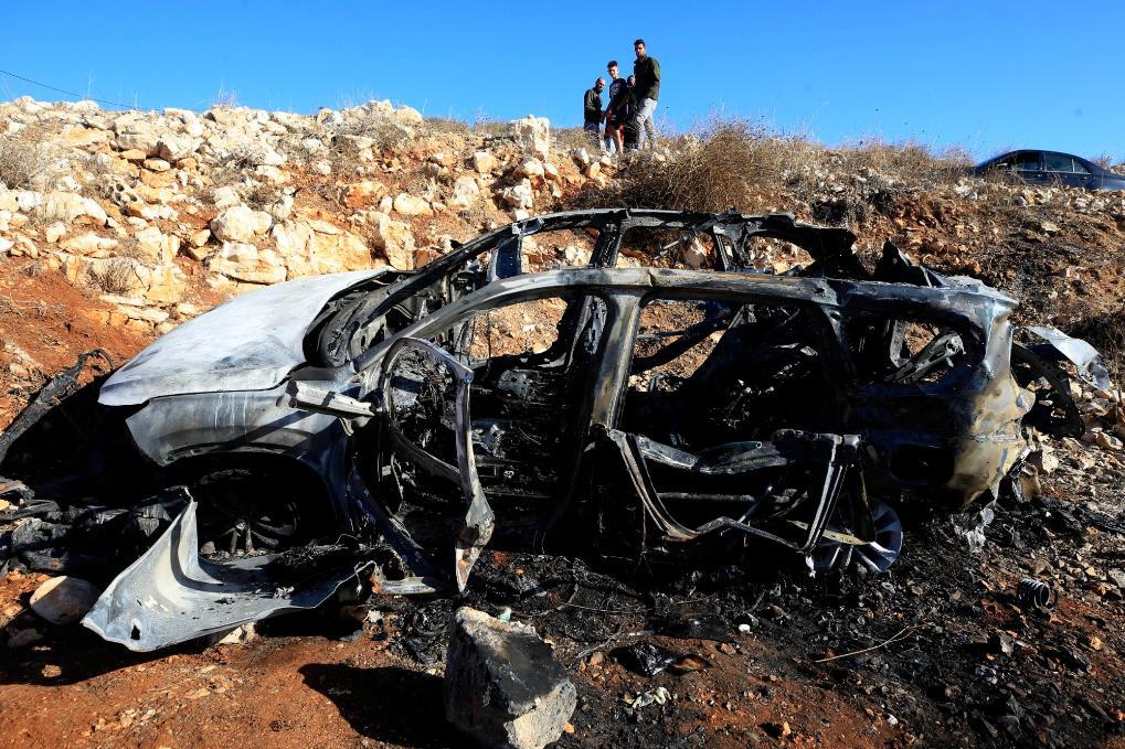 這是11月6日在黎巴嫩南部艾納塔拍攝的被以色列無人機炸毀的車輛殘骸。新華社發(fā)(阿里·哈希紹攝)