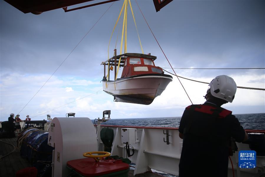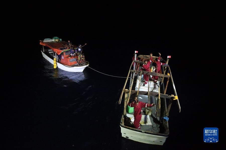 11月11日傍晚,考察隊(duì)將求救船只和人員移交當(dāng)?shù)亟討?yīng)船只。新華社記者 周圓 攝