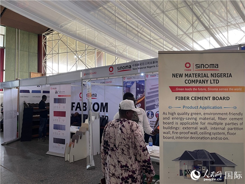 | 中材建設(shè)尼日利亞公司展示新型房建材料。人民網(wǎng)記者 姜宣攝 |