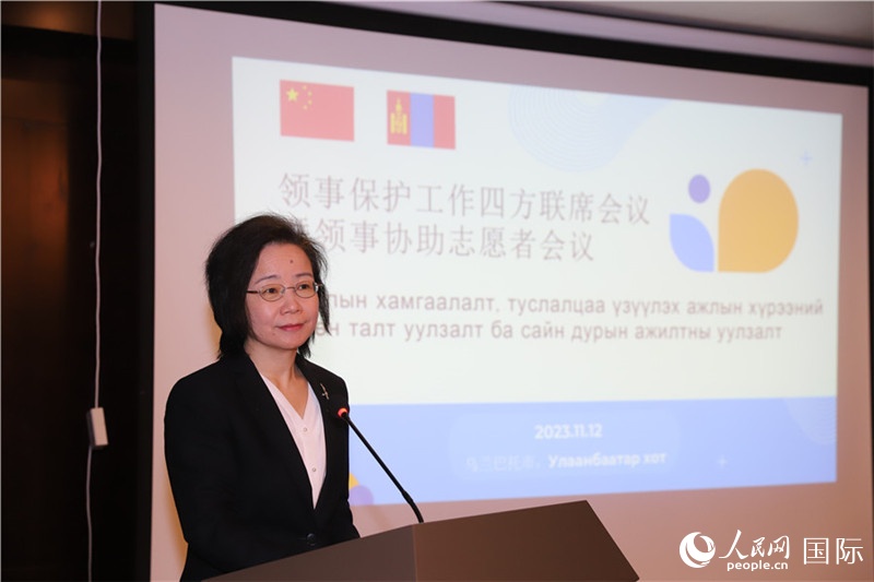 人民網(wǎng)烏蘭巴托11月13日電 (記者霍文)11月12日,中國駐蒙古使館與蒙古國中華總商會聯(lián)合舉辦2023年領(lǐng)事保護(hù)工作四方聯(lián)席會議和領(lǐng)事協(xié)助志愿者會議。中國駐蒙古國特命全權(quán)大使沈敏娟及駐蒙古使館、駐扎門烏德總領(lǐng)館,中華總商會、華僑協(xié)會、中資企業(yè)及留學(xué)生代表,領(lǐng)事協(xié)助志愿者以及蒙古警察總局、移民局官員等四方共百余人與會。