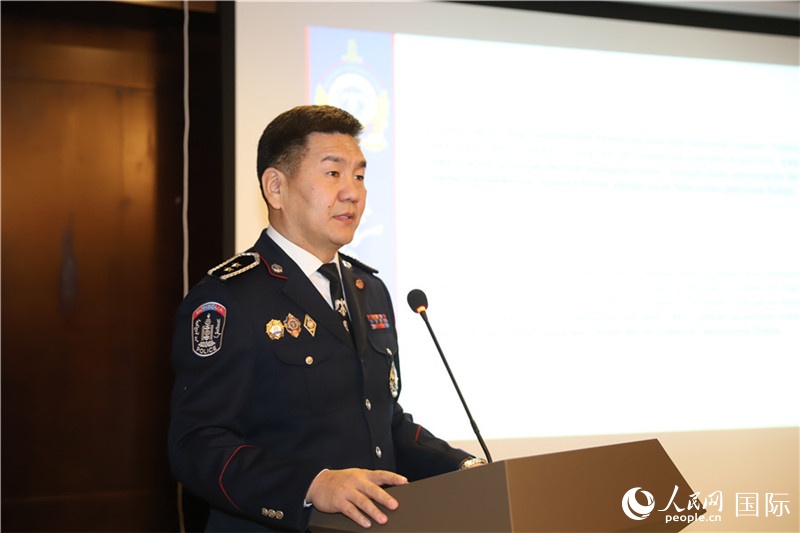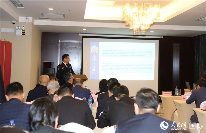 | 11月12日,蒙古國警察總局偵察局反侵害人身健康處長巴彥孟和中校講解案例。人民網(wǎng)記者 霍文攝 |