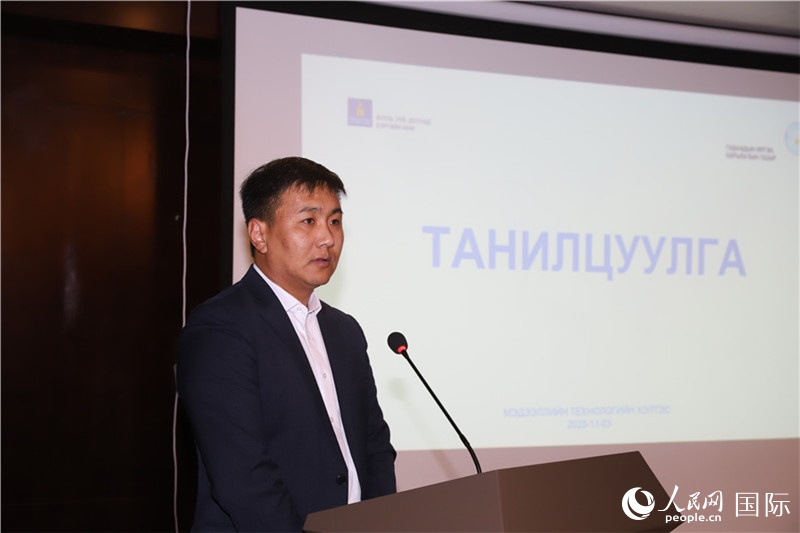 | 11月12日,蒙古國移民局科信處處長鋼照日格介紹相關(guān)政策法規(guī)。人民網(wǎng)記者 霍文攝 |