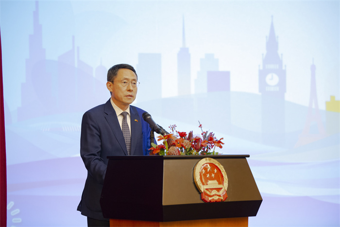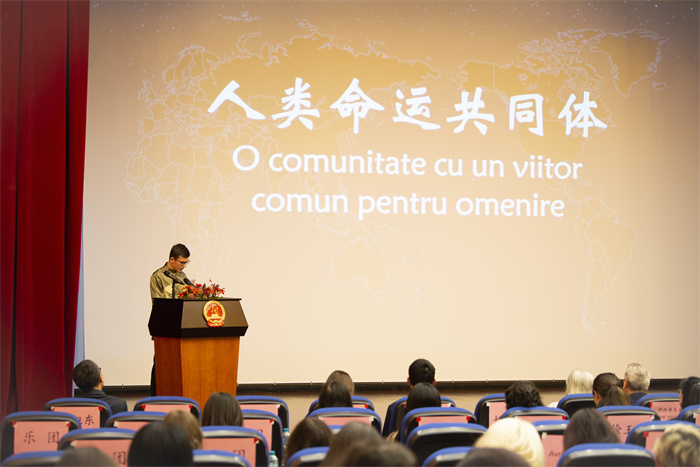 | 中國駐羅馬尼亞大使韓春霖致辭。布加勒斯特中國文化中心供圖 |
