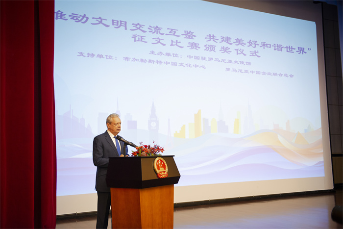人民網(wǎng)華沙11月18日電 (記者李增偉)“推動(dòng)文明交流互鑒 共建美好和諧世界”征文比賽頒獎(jiǎng)儀式17日在羅馬尼亞首都布加勒斯特舉行。此次活動(dòng)由中國駐羅馬尼亞大使館主辦,布加勒斯特中國文化中心和羅馬尼亞中國企業(yè)聯(lián)合總會(huì)支持。中國駐羅馬尼亞大使韓春霖、羅馬尼亞前駐華大使伊斯蒂喬亞、布加勒斯特中國文化中心、羅馬尼亞中國企業(yè)聯(lián)合總會(huì)、在羅孔子學(xué)院中外方院長、漢學(xué)家代表,以及參賽高校學(xué)生、家長等150多人出席。