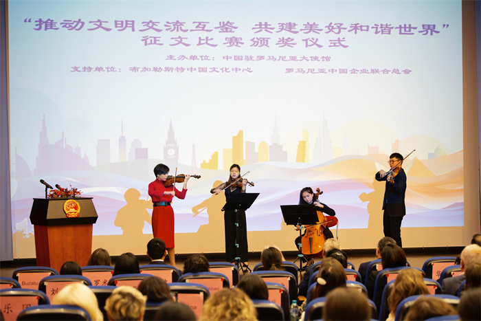 | 香港弦樂團(tuán)音樂家在頒獎(jiǎng)儀式上的精彩演出。布加勒斯特中國文化中心供圖 |