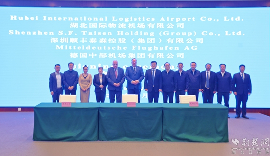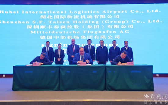 荊楚網(wǎng)(湖北日?qǐng)?bào)網(wǎng))訊(記者 金康 通訊員 夏榮港)11月20日,湖北國(guó)際物流機(jī)場(chǎng)有限公司、深圳順豐泰森控股(集團(tuán))有限公司、德國(guó)中部機(jī)場(chǎng)集團(tuán)有限公司,在鄂州市臨空經(jīng)濟(jì)區(qū)三方簽訂戰(zhàn)略合作備忘錄。這標(biāo)志著鄂州花湖機(jī)場(chǎng)和德國(guó)萊比錫/哈勒機(jī)場(chǎng)牽手合作,共同推動(dòng)三方航空貨運(yùn)發(fā)展。