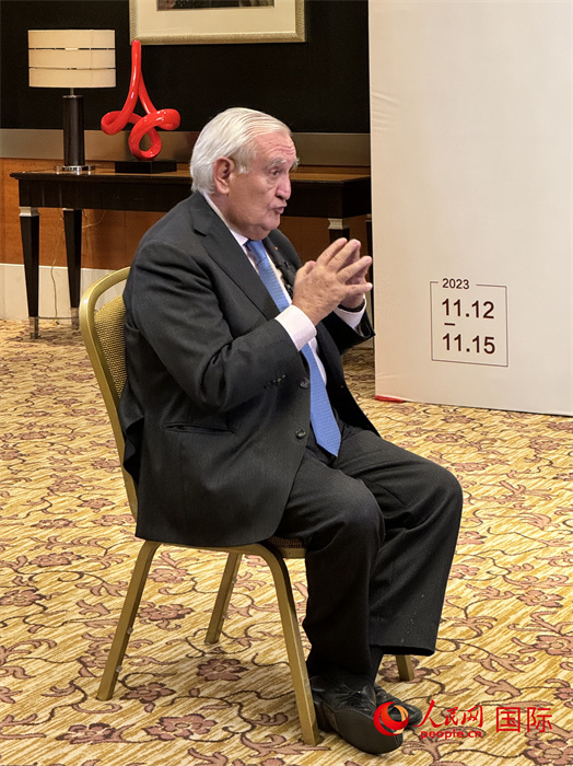 法國前總理、法國展望與創(chuàng)新基金會主席讓-皮埃爾·拉法蘭接受人民網的采訪。國際在線供圖