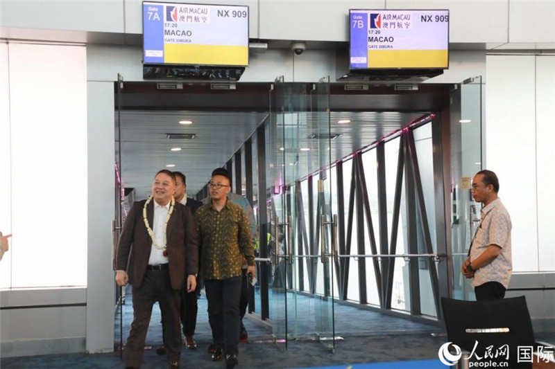 搭乘澳門航空首班澳門至雅加達(dá)航班的乘客抵達(dá)雅加達(dá)蘇加諾-哈達(dá)國際機(jī)場。人民網(wǎng)記者 曹師韻攝