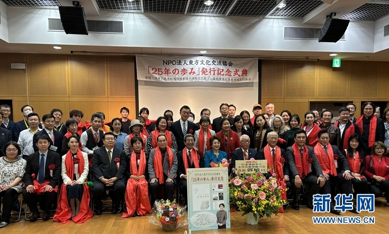 新華網(wǎng)東京12月4日電(記者馮翀 胡曉格)日本非盈利組織東方文化交流協(xié)會《二十五周年的歷程》雜志發(fā)行紀念典禮2日在東京都新宿區(qū)戶冢地區(qū)中心開幕。東方文化交流協(xié)會理事長高山英子、副理事長新井藤夫,日中友好協(xié)會常務理事永田哲二,日中協(xié)會理事長瀨野清水,東京話劇藝術協(xié)會會長凌慶成等出席此次典禮并致辭。