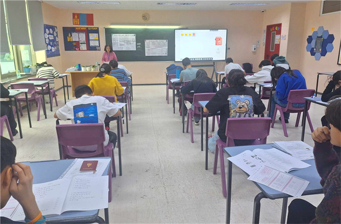 | 12月3日HSK考場。蒙古國立教育大學(xué)孔子學(xué)院供圖 |