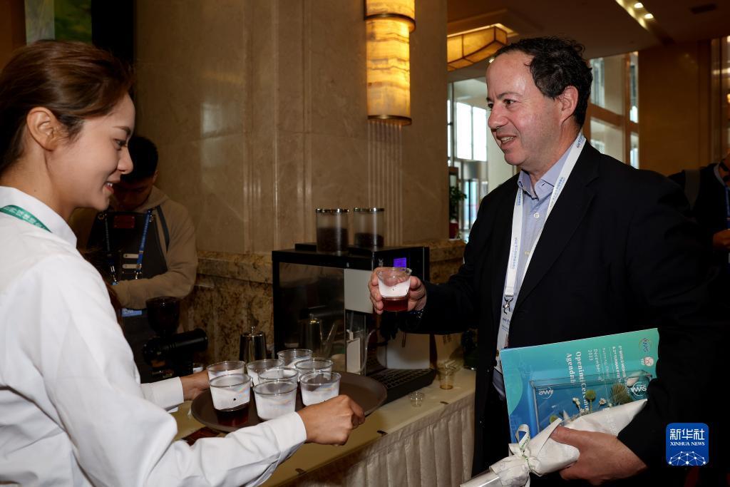 12月5日,在云南昆明參加第五屆世界媒體峰會(云南分會場)暨第二屆大象國際傳播論壇的參會代表體驗云南保山小??Х?。