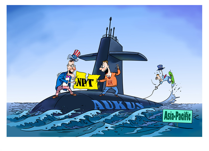 美英澳三國核潛艇合作涉及核武器國家向無核武器國家轉(zhuǎn)讓大量武器級高濃鈾,構(gòu)成嚴重核擴散風險。這與《不擴散核武器條約》的目的和宗旨相悖,是赤裸裸的雙重標準。