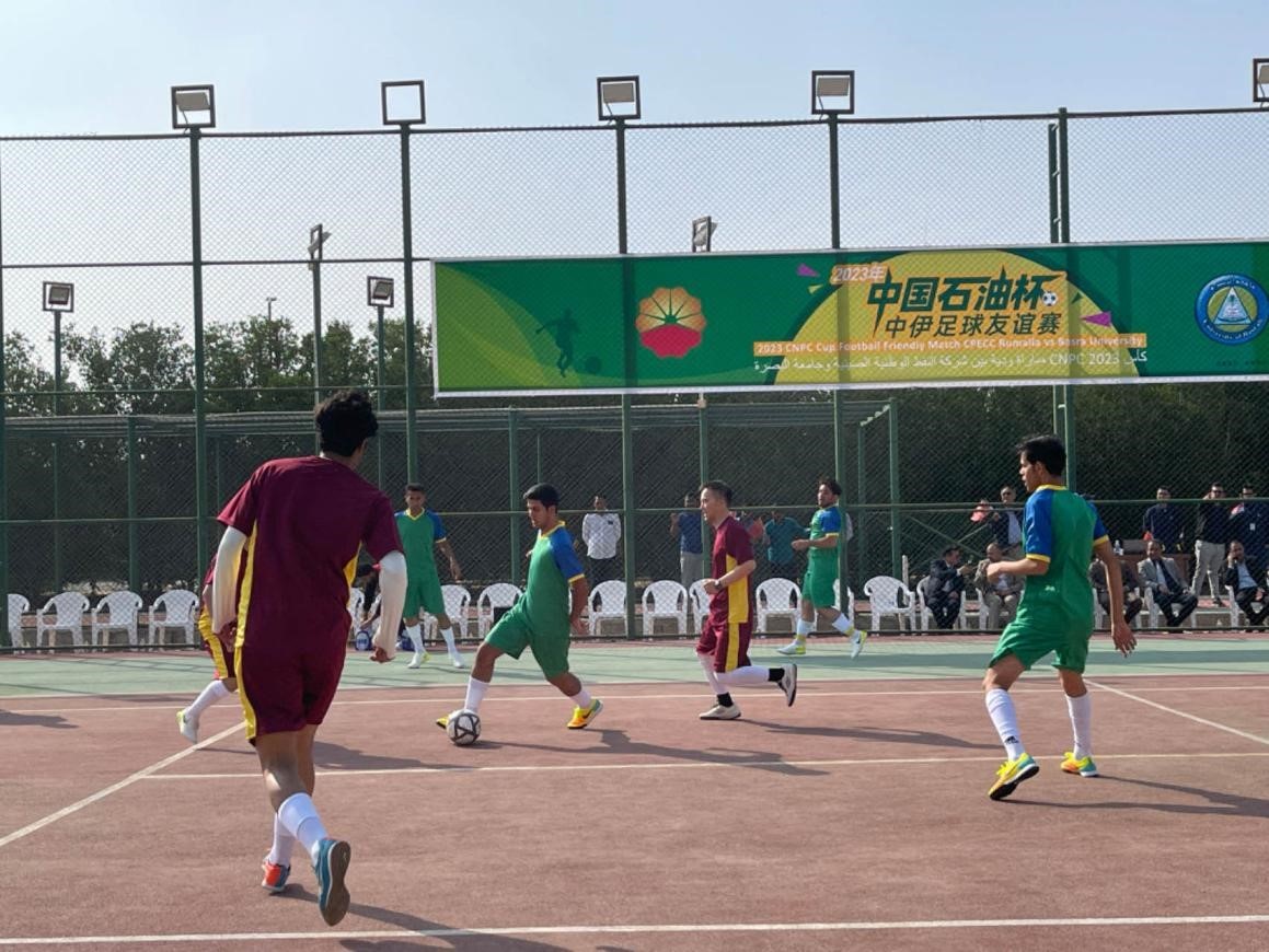 12月14日,中國(guó)石油(伊拉克)魯邁拉片區(qū)舉辦公共開放日和足球友誼賽。中國(guó)石油工程建設(shè)有限公司魯邁拉項(xiàng)目代表隊(duì)與巴士拉大學(xué)代表隊(duì)進(jìn)行了比賽,巴士拉大學(xué)代表隊(duì)獲勝。文學(xué)軍攝