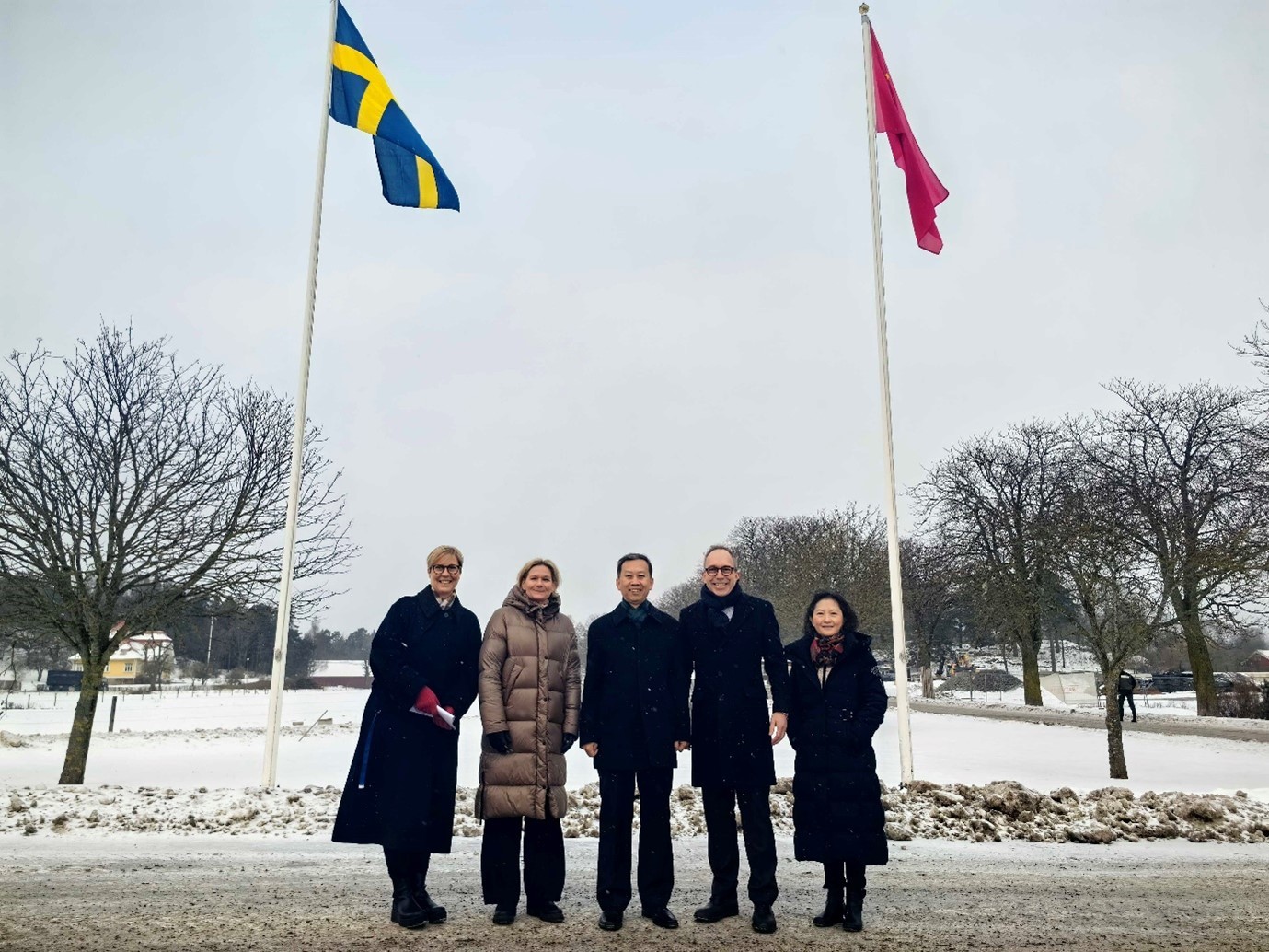 中國(guó)駐瑞典大使崔愛(ài)民(中)參訪瑞典利拉伐公司。中國(guó)駐瑞典大使館供圖