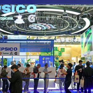 11月8日在第六屆進(jìn)博會食品及農(nóng)產(chǎn)品展區(qū)拍攝的百事公司展臺。新華社記者 劉穎 攝