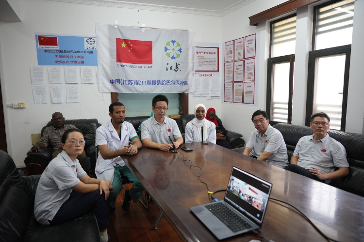 | 遠(yuǎn)程會診現(xiàn)場。中國援桑給巴爾醫(yī)療隊供圖 |