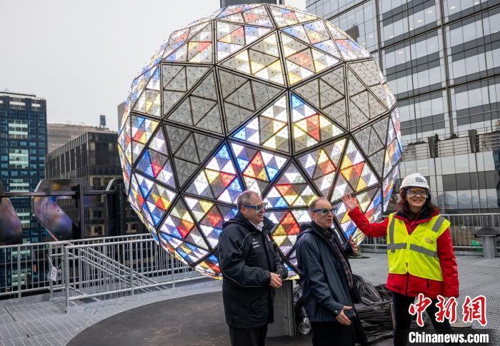 中新社紐約12月27日電 (記者 王帆)紐約時(shí)報(bào)廣場(chǎng)新年倒計(jì)時(shí)水晶球27日調(diào)試完畢后亮相。用于跨年夜慶?;顒?dòng)的水晶球此次采用了全新設(shè)計(jì)的燈光圖案向歷史致敬。