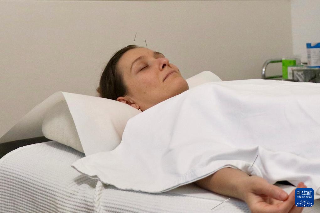12月11日,在瑞士邊境城市沙夫豪森的一家中醫(yī)診所,患者米羅斯拉娃接受針灸治療。