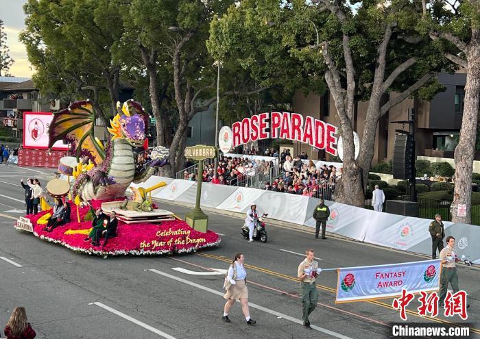 按照玫瑰花車游行的傳統(tǒng),花車由鮮花與枝葉等天然材料裝飾而成。2024年度“玫瑰皇后和玫瑰公主”花車、第110屆“玫瑰碗”橄欖球賽花車、關(guān)愛兒童和重視環(huán)保等主題花車各具匠心。值得一提的是,在中國(guó)傳統(tǒng)節(jié)日龍年春節(jié)即將到來之際,南加州華人聚居地阿罕布拉市帶來以“慶祝龍年”為主題的花車,用花朵融匯龍、音樂與愛等元素,憑借“奇幻與想象力方面的出色展現(xiàn)”榮獲花車設(shè)計(jì)“想象力獎(jiǎng)”。