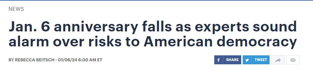 這項民調結果公布之時,正值“國會山騷亂”事件三周年之際,美國也迎來新的選舉年。《國會山報》網(wǎng)站在6日的報道中再次提到,目前美國出現(xiàn)了一系列與民主狀況有關的令人不安的跡象。