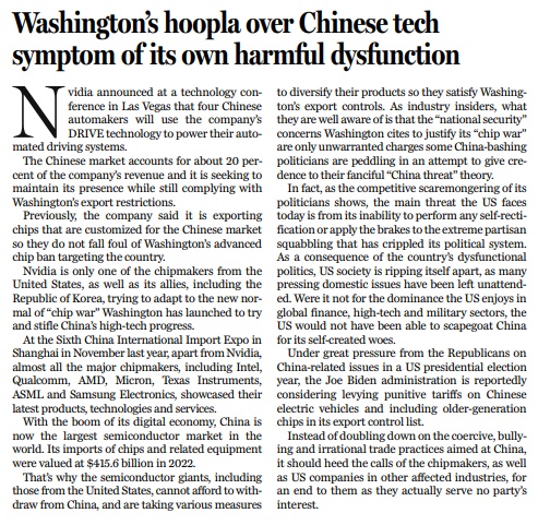 原標(biāo)題:Washington’s hoopla over Chinese tech symptom of its own harmful dysfunction