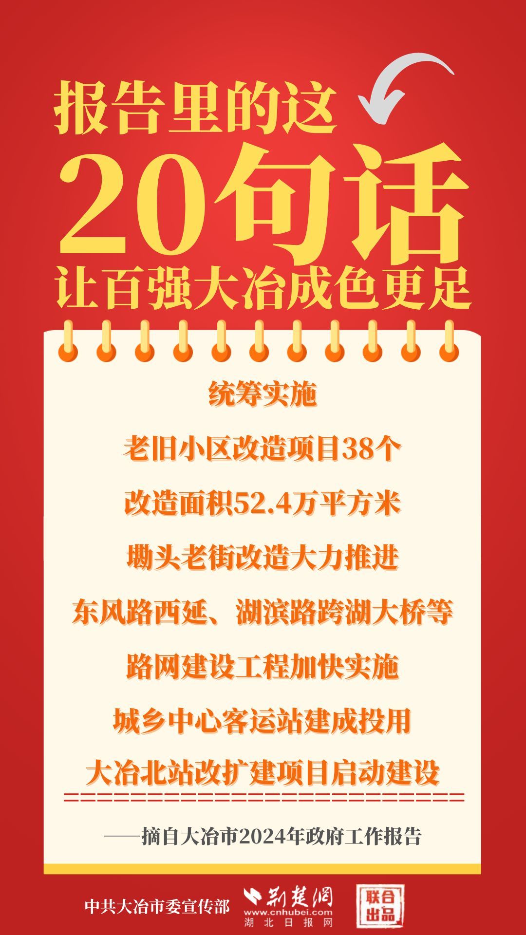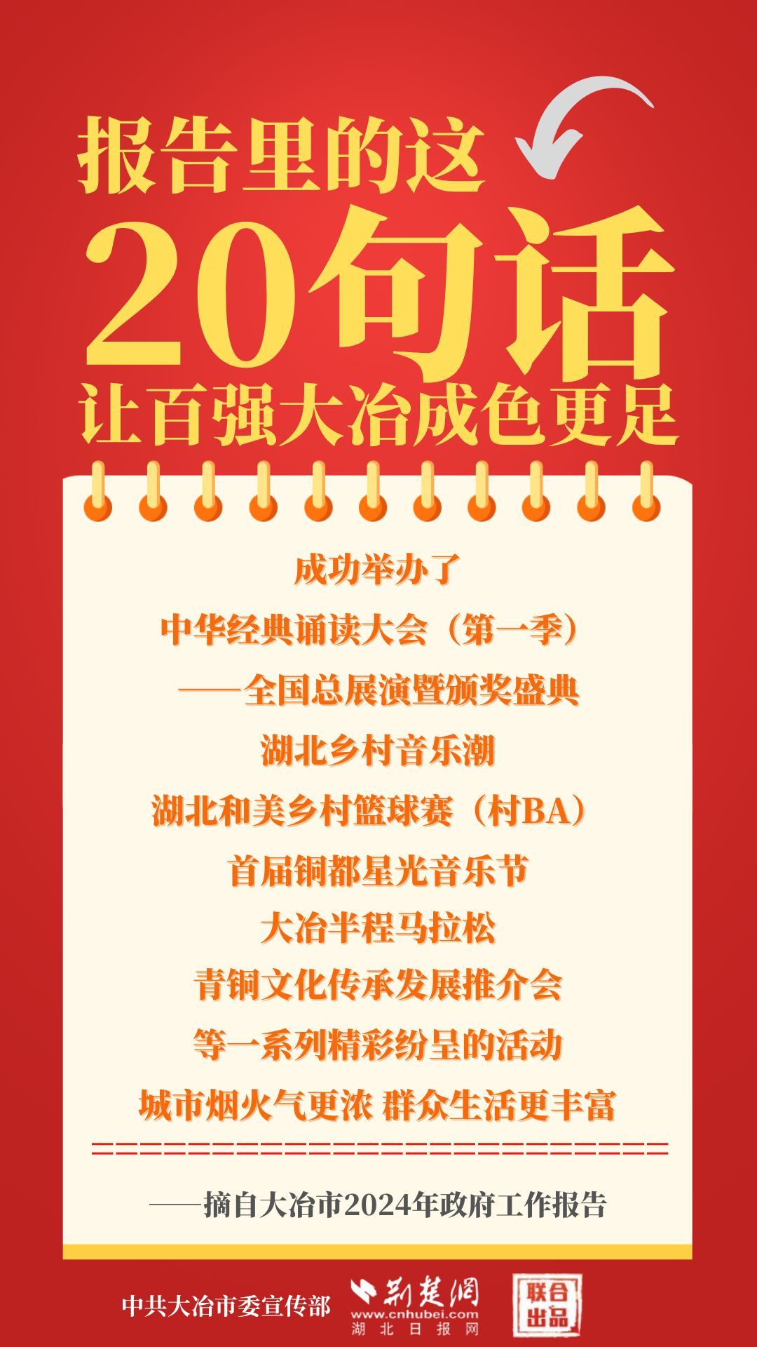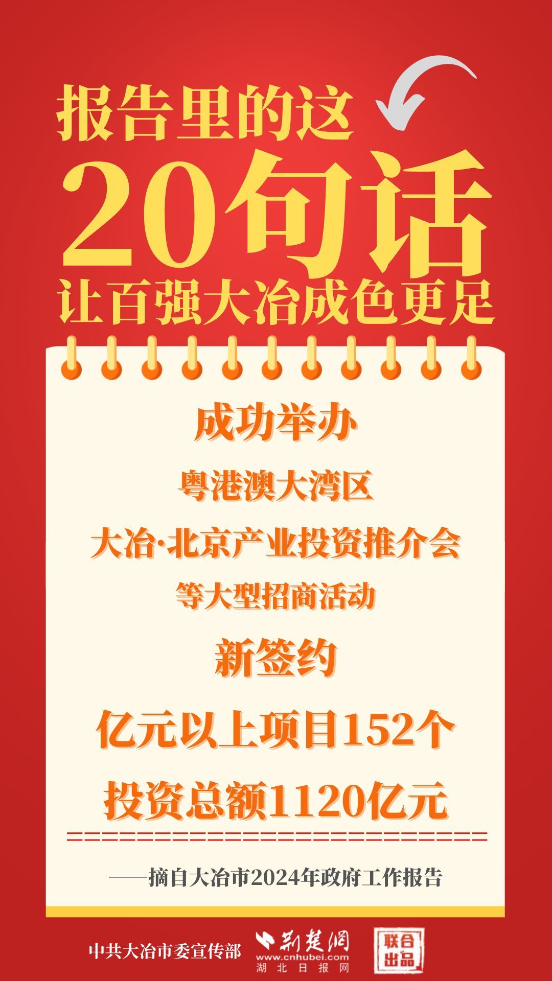 1月12日,大冶市第七屆人民代表大會(huì)第四次會(huì)議開幕,大冶市委副書記、市長(zhǎng)孫輒作政府工作報(bào)告。報(bào)告里的這20句話,讓百?gòu)?qiáng)大冶成色更足。