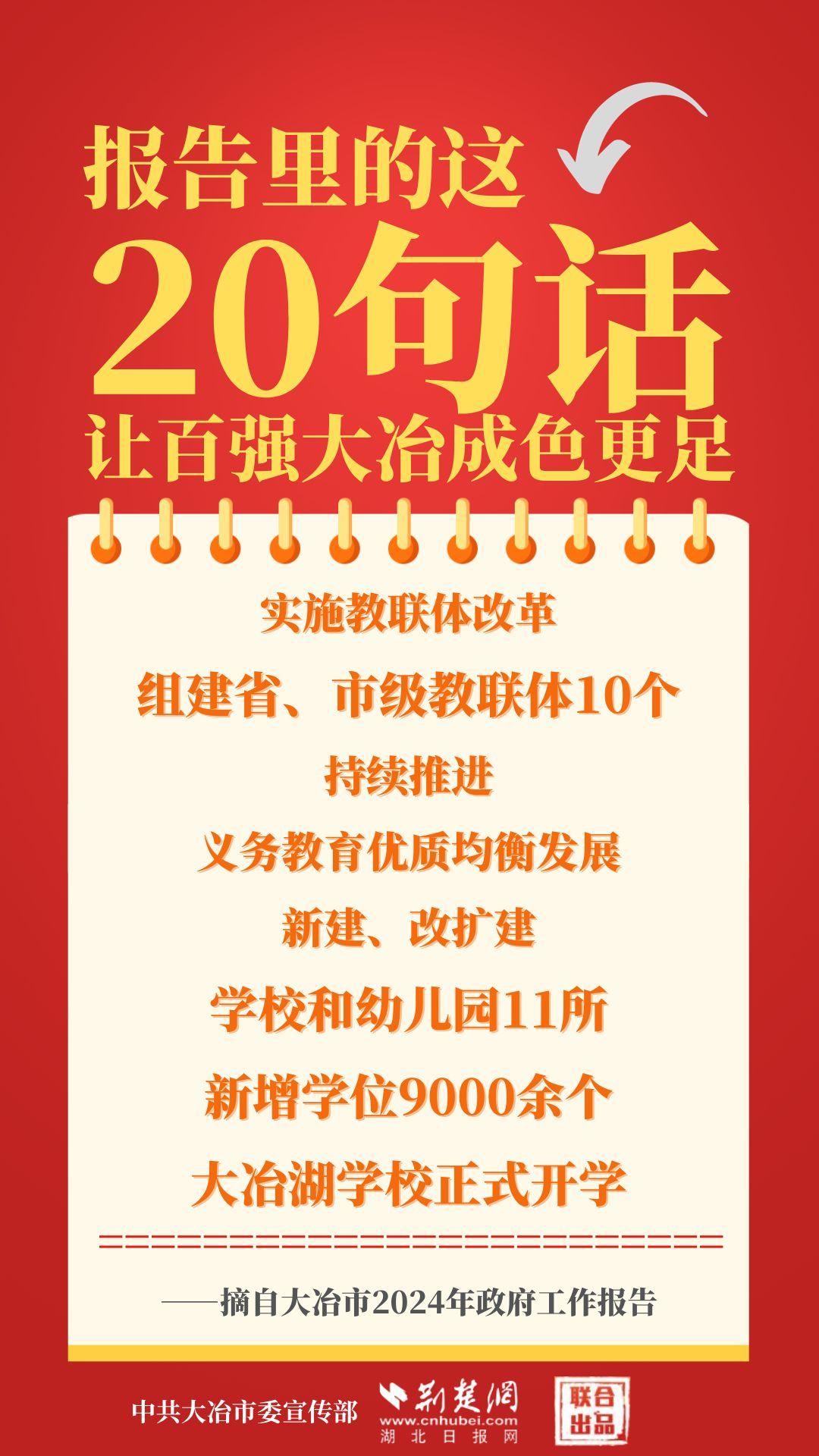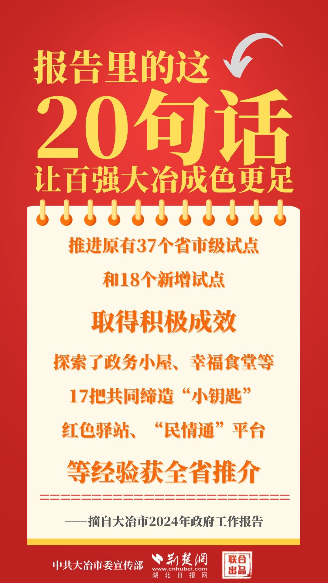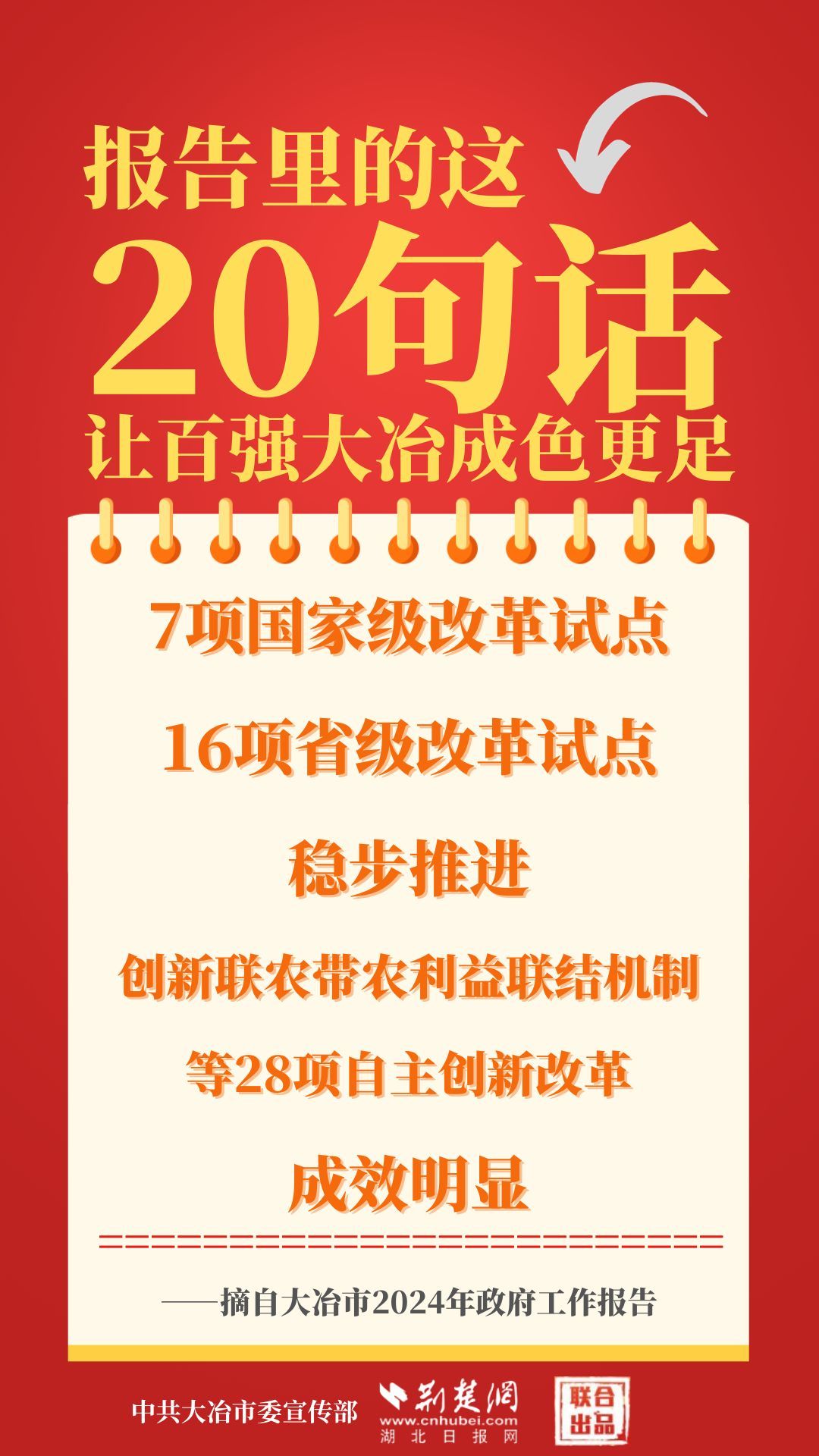 1月12日,大冶市第七屆人民代表大會(huì)第四次會(huì)議開幕,大冶市委副書記、市長(zhǎng)孫輒作政府工作報(bào)告。報(bào)告里的這20句話,讓百?gòu)?qiáng)大冶成色更足。