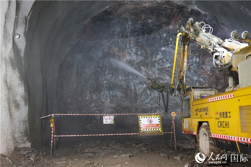 | 中國鐵建項目團(tuán)隊在沙特新未來城隧道支洞現(xiàn)場作業(yè)。人民網(wǎng)記者 張志文攝 |