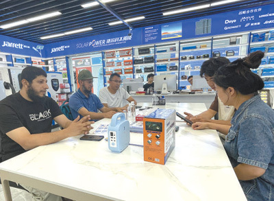 最近,埃馬紐埃爾又開(kāi)始關(guān)注新能源產(chǎn)品。“喀麥隆一些地方存在電力短缺、供電不穩(wěn)的問(wèn)題,很多當(dāng)?shù)厝讼M夷茉谥袊?guó)找到合適的產(chǎn)品。”為此,他把目標(biāo)瞄準(zhǔn)了義烏國(guó)際商貿(mào)城的新能源產(chǎn)品市場(chǎng),尋找到一些適合喀麥隆的光伏設(shè)備。“中國(guó)的新能源產(chǎn)品性能可靠、性價(jià)比高,產(chǎn)品品類覆蓋領(lǐng)域廣泛?!卑qR紐埃爾表示,大到醫(yī)療機(jī)構(gòu),小到禽畜養(yǎng)殖場(chǎng),中國(guó)光伏設(shè)備供應(yīng)的電力有助于滿足當(dāng)?shù)孛癖娚a(chǎn)生活的用電需求。