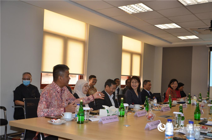 參訪嘉賓與五菱印尼公司負(fù)責(zé)人交流。人民網(wǎng)記者 李培松攝