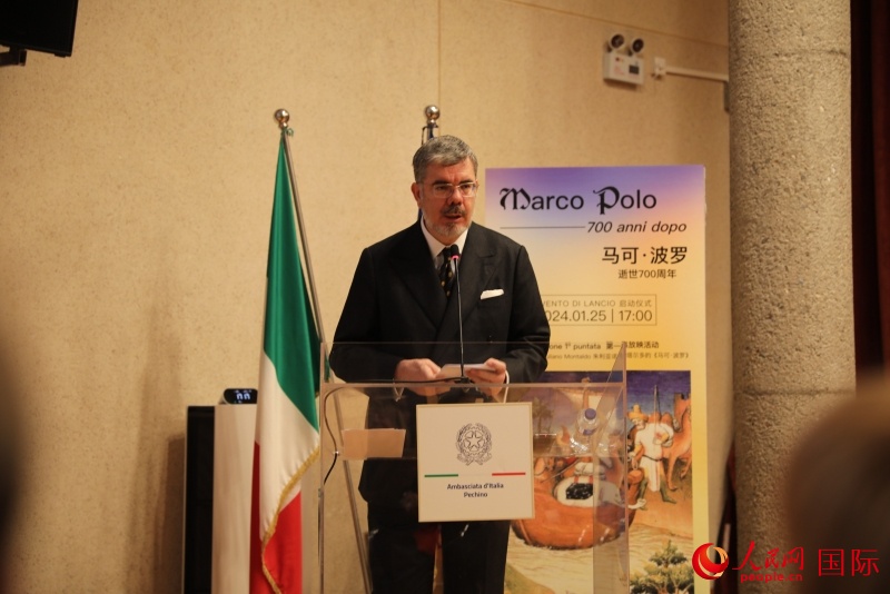 意大利駐華大使安博思在“馬可·波羅逝世700周年”系列紀(jì)念活動(dòng)開(kāi)幕式上發(fā)表致辭。人民網(wǎng) 劉動(dòng)攝